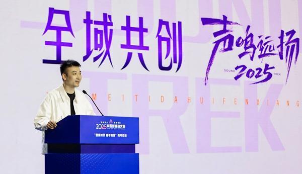 湖南卫视节目中心的任洋分享《声鸣远扬2025》的创新实践。这档节目联合六家卫视和两大视频平台,开创“联播+联选”模式,打破美声、民族、流行唱法的界限,让音乐真正实现全域打通。